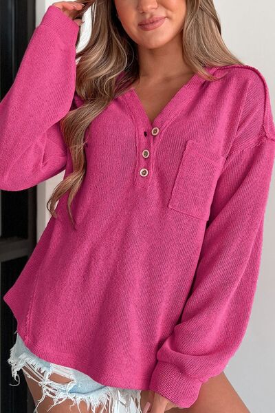 Exposed Seam Half Button Long Sleeve Sweatshirt