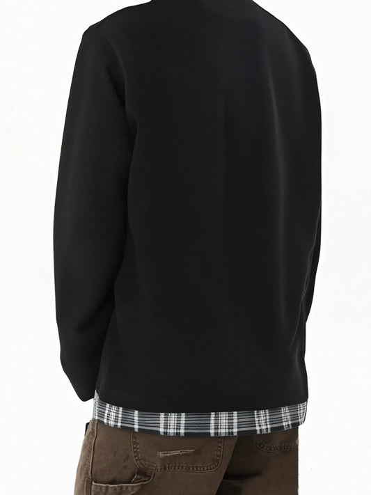Men's Crewneck Sweatshirt with Plaid Hem Detail