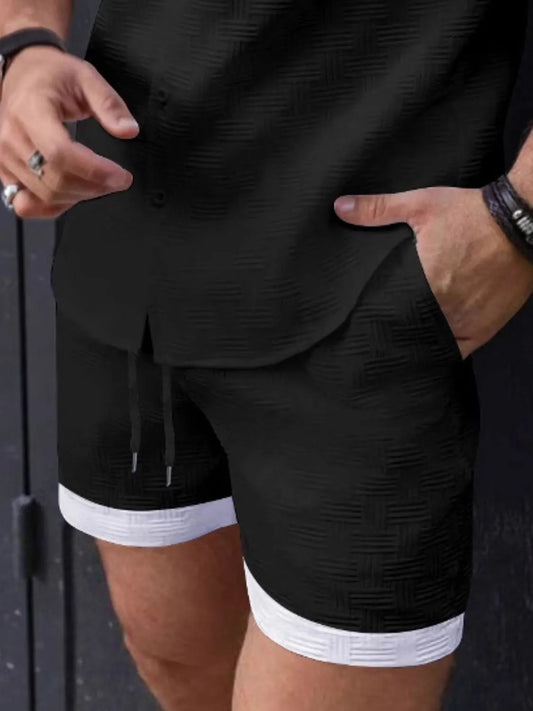 Men's Full Size Button Detail Short Sleeve Top and Shorts Set Plus Size