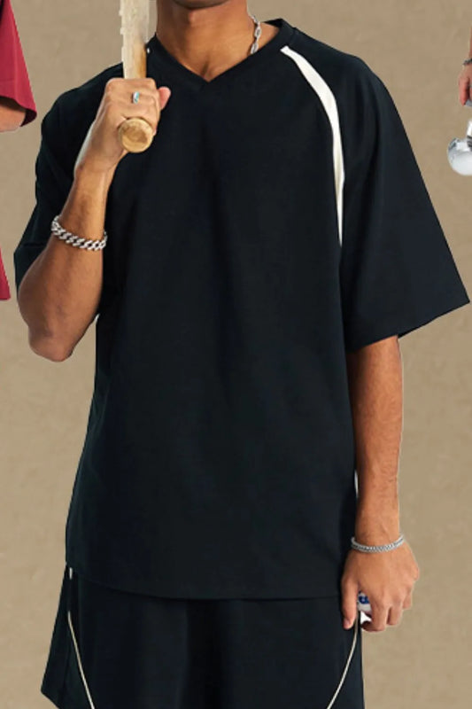 Men's Contrast Round Neck Short Sleeve T-Shirt