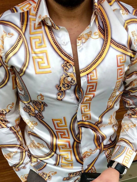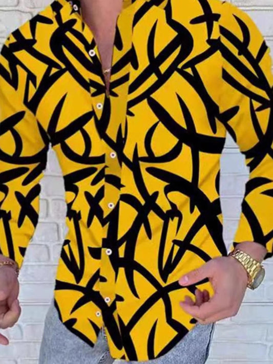 Men's Plus Size Printed Button Up Long Sleeve Shirt